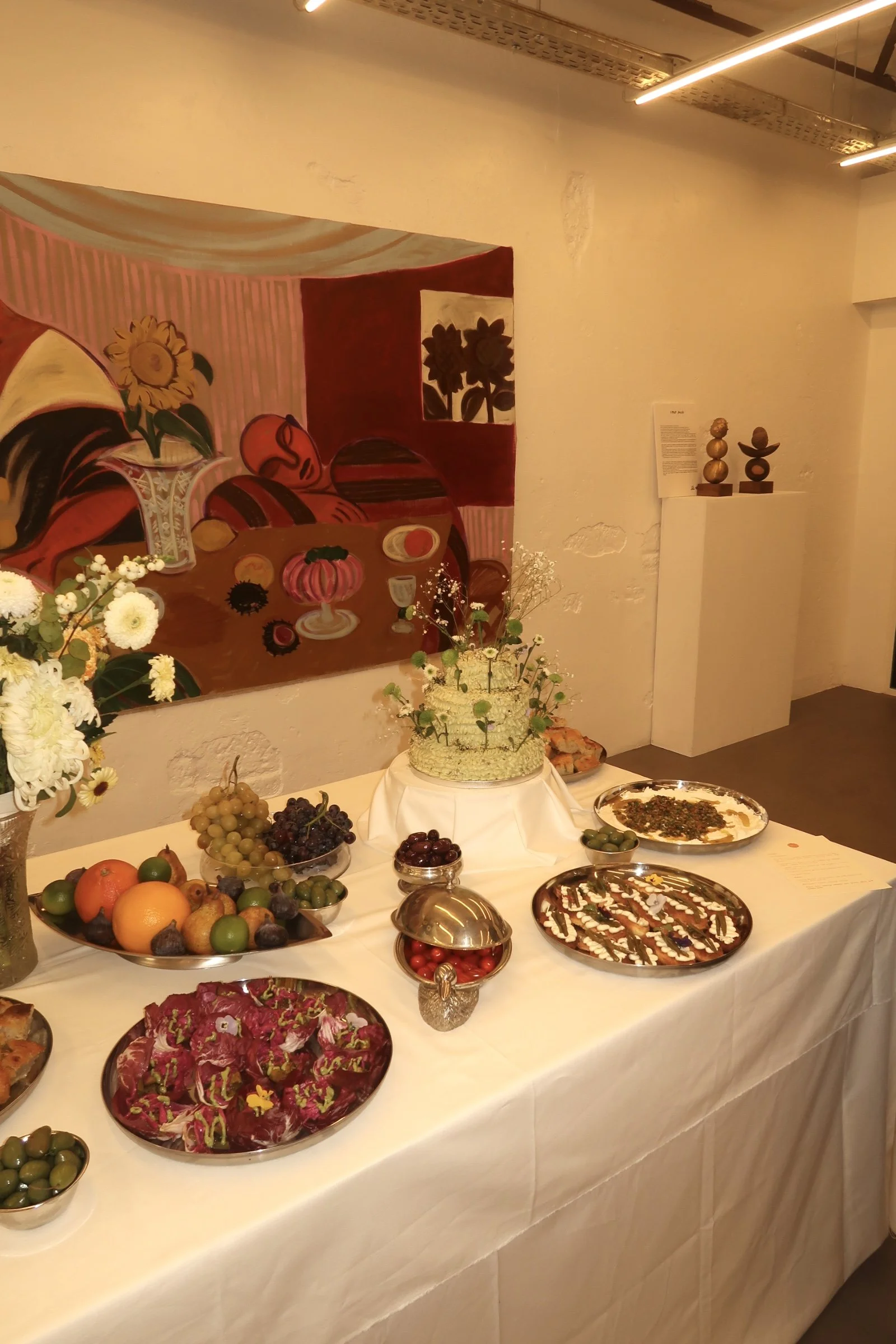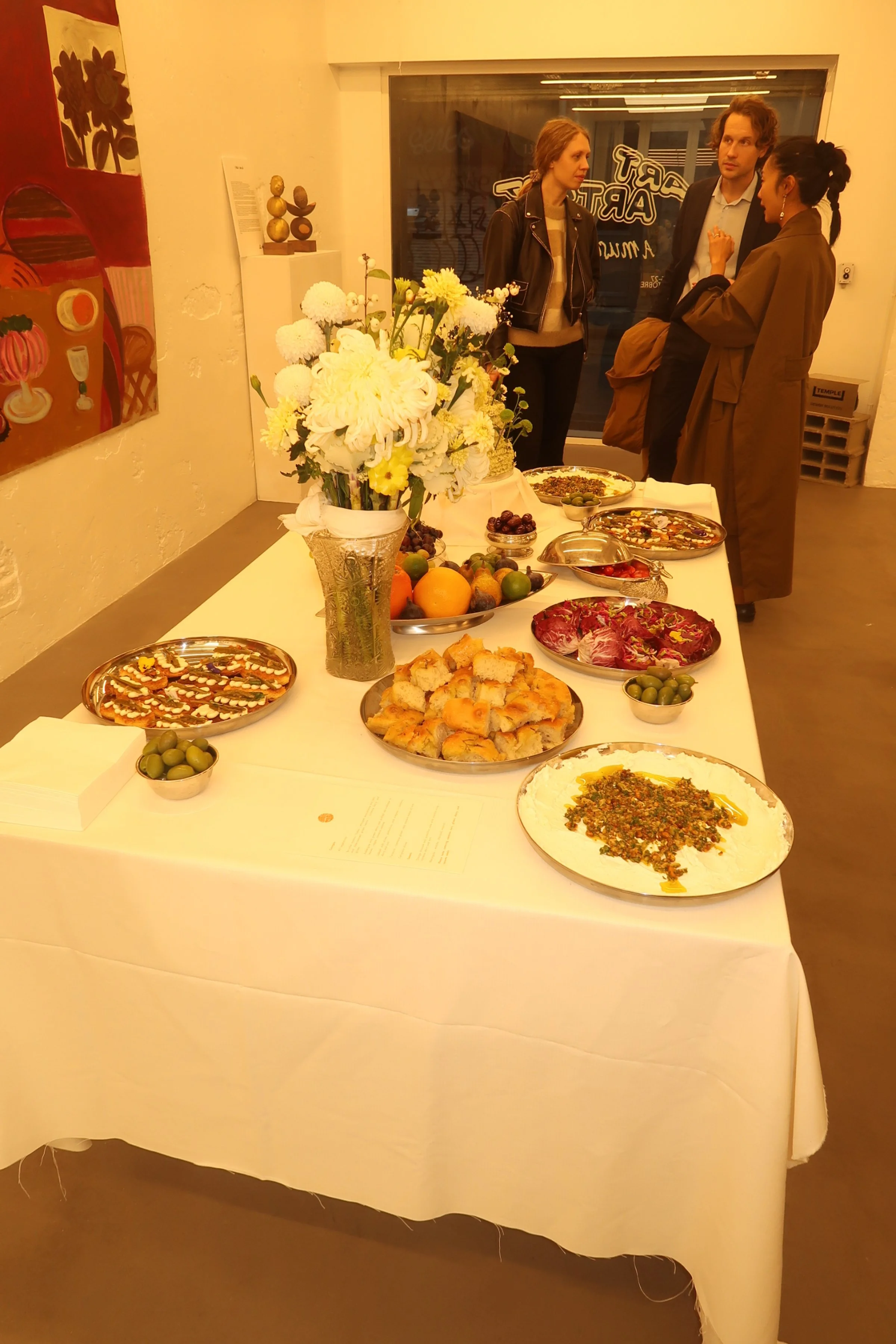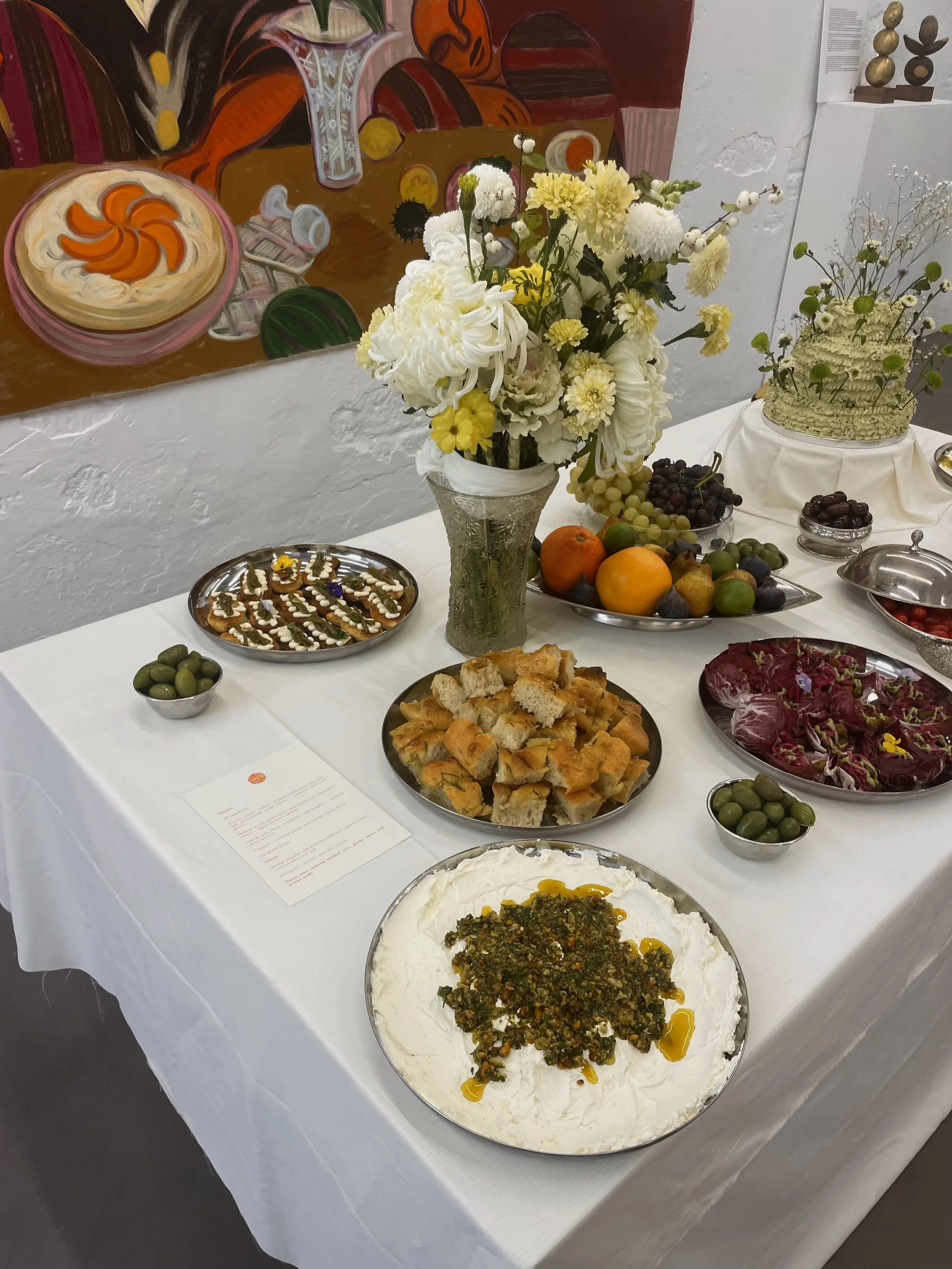 Amuse Bouche’ - A vision between real life and art for Adidas X Rachel Marsil Launch, Paris. The menu for Adidas was inspired by Rachel’s paintings and the space. The concept of a family eating round a table and sharing dishes, as shown in the paintings, inspired the artist Rachel.